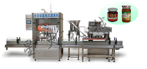 果醬包裝機使6頭活塞式灌裝機和貼標機配合在一起使用配合成一條無人聯動生產線,可以根據企業的不同需要進行訂購你滿意的產品。醬料包裝生產線一般每分鐘能夠灌裝果醬60~80瓶,適合一些中小型企業的生產多..